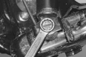 3. Відгвинчуємо гайку кріплення штока амортизатора, утримуючи шток від провертання другим ключем.