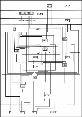 Информационная взаимосвязь задач, реализуемая в процессе их решения в масштабе реального времени отображается схемой информационной структуры УНС в составе информационно-планирующей системы (рис. 4.1). Содержание информационных связей раскрыто в табл. 4.1, где каждая связь.