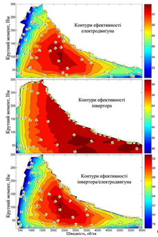 Рисунок 5.1 – Об’єднані контурні карти ефективності системи двигун-інвертор