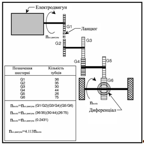 Рисунок 2.5 – Розташування блоку шестерень між двигуном і колесами