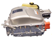 Складальна одиниця, зображена на рисунку 2.9, містить інвертор, який виробляє 3-фазний змінний струм, щоб вести електродвигун і включає конвертер постійного струму, який виробляє напругу 12 В для живлення допоміжного обладнання. Інвертор забезпечує два напрямки зміни напруги: конвертер підвищення напруги підвищує напругу з 200В до максимальних 500В, чи знижує її для зарядки 200 В батареї.