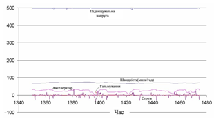 Рисунок 3.14 – Ділянка їздового циклу, обрана, щоб ілюструвати високий рівень зміни кожного параметра