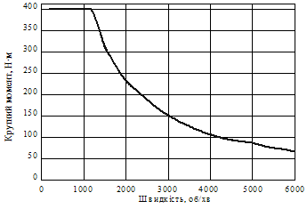Рисунок 3.26 – Залежність максимального значення крутного моменту від частоти обертів електродвигуна