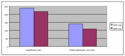 Рисунок 1.9 показывает, что по данным за 2005 год выработка и объем перевозок снизились по сравнению с 2004 годом на 0,8% и на 22,1% соответственно.