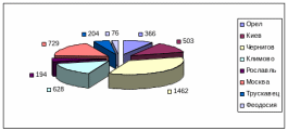 Как видно из рисунка 1.1, по количеству совершенных рейсов большую часть из всего объема международных автобусных перевозок, выполняемых РДАУП «Автобусный парк №1» (г. Гомель), занимали перевозки, осуществляемые в направлении Гомель – Чернигов. Минимальное количество рейсов (76) производилось на маршруте Гомель – Феодосия, который и в 2004 году выполнялся только в летний период.