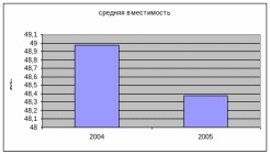 Анализ рисунка 1.7 показывает, что средняя вместимость автобусов, используемых для международных перевозок пассажиров, за 2005 год снизилась на 1,2% по сравнению с 2004 годом