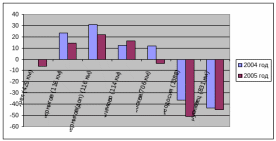 По данным таблицы Г.1 построена гистограмма уровней рентабельности международных автобусных перевозок за 2004 и 2005 годы (рисунок 1.3)