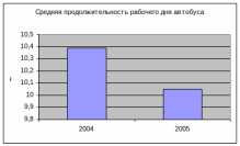 Как видно из рисунка 1.6, величина средней продолжительности рабочего дня автобуса снизилась за год на 3,3%