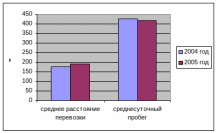 Численное значение среднего расстояния перевозки возросло за год на 8,5%, а среднесуточного пробега снизилось на 2%.
