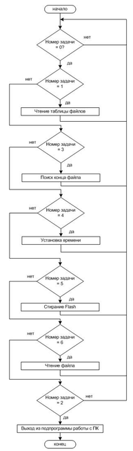 В режиме работы с персональным компьютером контроллер постоянно смотрит принятые данные и в зависимости от принятой команды выполняет одну из 6 задач.