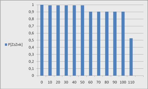 Из таблицы 2.2. следует, что при расчетной нагрузке 70 ед. вероятность безотказной работы установки P[Z ≥ 70] = 0,9031 не соответствует заданному нормативному уровню P норм = 0,98. Следовательно, требуется повышение надежности установки, которое в данном случае может быть обеспечено вводом дополнительной перемычки.