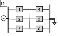 В этом выражении операция β1 предполагает преобразование трех элементов х1х2 x3 в один эквивалентный структурный элемент (который так и обозначим - β1); β2 состоит из трех элементов х4х5 x6, которые тоже будут преобразованы в один элемент - β2. При этом элементы β1, β2 образуют вместе два последовательно соединенных (в смысле надежности) элемента посредством операции α.