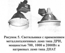 Для высоких 20-40м производственных помещений металлургических предприятий, характеризующихся большой запыленностью, высокой температурой восходящих потоков воздуха, где уход и обслуживание светильников затруднены и добиться нормируемой освещенности трудно, ОАО «Ватра» разработало и освоило принципиально новую конструкцию светильников с применением металлогалогенных ламп типа ДРИ, мощностью 700, 1000 и 2000Вт и натриевых ламп типа ДНАТ, мощностью 1000Вт с одной и двумя горелками. Это серия ГСП-19В-700, ГСП-19В-1000, ГСП-20В-2000 на напряжение 380В и ЖСП-19В-1000 (рис.5).