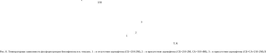 Для того, чтобы установить, как влияет присутствие акцептора в растворе на характер температурной зависимости фосфоресценции донора, был проведен соответствующий эксперимент для той же пары бензофенон-аценафтен в н.-гексане.