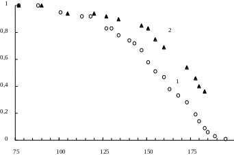 Существование насыщения I/I0 (nT/n0T) при отжиге говорит о том, что в растворе с прошествием времени достигается равновесное состояние. Это состояние в условиях стационарного возбуждения характеризуется определённым числом триплетных молекул акцептора энергии, участвующих в излучении. Причём число триплетных молекул акцептора, характеризующих равновесное состояние, растёт с увеличением температуры отжига.