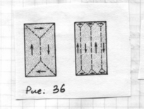 Рисунок 54. Доменная структура тонкой ферромагнитной плёнки при её размагничивании под различными углами к оси лёгкого намагничивания (направление осей лёгкого намагничивания показано стрелками)