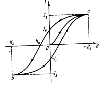 Перемагничивание образца (например, из железа) можно осуществить легко, если вспомнить, что электрический ток, протекая по проводнику, создает магнитное поле. Практически это делается так. Образец помещают в соленоид, через который пропускают достаточно сильный ток. Тогда внутри соленоида создается сильное магнитное поле и помещенный внутри него образец намагничивается. Для перемагничивания следует, очевидно, переменить направление тока в катушке.
