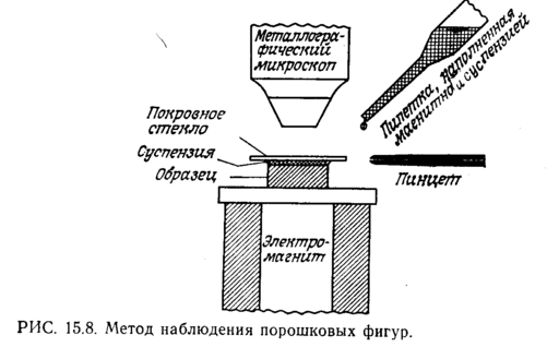 В настоящее время разработано много экспериментальных методик для визуального наблюдения доменной структуры, как на поверхности ферромагнитного образца, так и частично в его толщине. Наиболее простым является метод порошковых фигур. Но метод порошковых фигур имеет ряд недостатков. Его использование ограниченно небольшим интервалом температур, близким к комнатной. Так же с его помощью нельзя проследить за быстрым изменением доменной структуры. Это связано с инерционностью магнитного порошка, не успевающего следовать за быстрыми перемещениями междоменных границ.