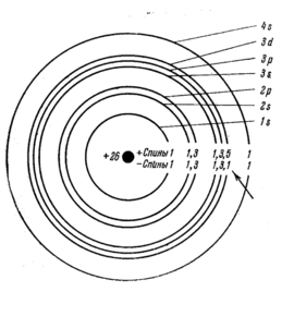 Рисунок 10 - Электронные слои и подслои в атоме железа.