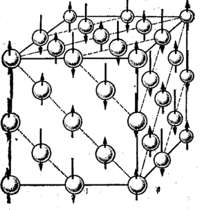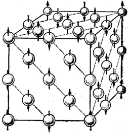 Рисунок 3 - Типичная картина атомной магнитной структуры ферромагнетика. Все атомные магнитные моменты параллельны и направлены в одну сторону (коллинеарная магнитная структура)