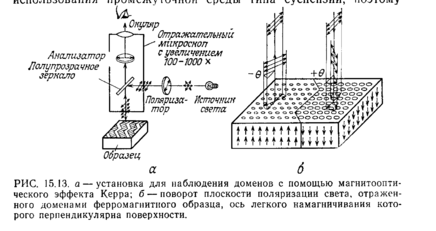 Для наблюдения доменной структуры можно также применять магнитооптические методы, основанные на явлениях Керра и Фарадея. В отличае от метода порошковых фигур, магнитооптические методы дают нам возможность видеть всю поверхность доменов, а не только их граничные слои. При исследовании доменной структуры тонких ферромагнитных пленок, как и в случае массивных ферромагнетиков, могут быть использованы метод порошковых фигур и магнитооптический эффект Керра.