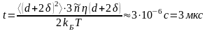 Из этой формулы можно оценить время, в течение которого частица магнетита в керосине при Т=300К сместится на расстояние, равное своему гидродинамическому диаметру:
