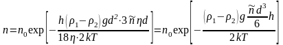 Из этих формул можно сделать оценочные прикидки. В качестве оценочных параметров примем: ρ1=5200 кг/м3; ρ2=770 кг/м3; η=1,5·10-3 кг/м∙с; d=10нм; Т=300 К; k=1,38·10-3 Дж/К.