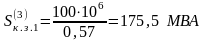 - установившееся значение мощности к.з. энергосистемы, принимается