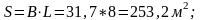 Длина участка В = 31,7 м, ширина L = 8 м;