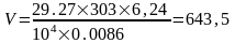 Зная вес отсасываемых газов Gв, находим объем воздуха V, м3/час :