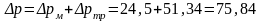 р1= рп + рв= 0,043+ 0,0086=0,052 ата.