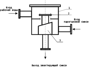 1- корпус; 2- сопловый аппарат; 3- камера смешения