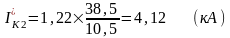 Истинное значение тока короткого замыкания в точке К2 определяется приведением его к напряжению 10 кВ по формуле: