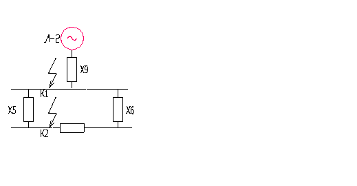 Для расчета тока короткого замыкания в точке К2 необходимо последовательно сложить сопротивления Х7 и Х5: