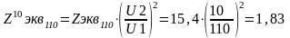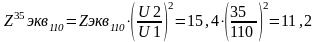 Приведение значений полного сопротивления схемы выполняется через коэффициент трансформации к стороне, на которой считается напряжение короткого замыкания и выражается формулой: