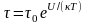 де τ0 — період коливань молекули біля положення рівноваги; U — висота потенційного бар'єру, який відділяє один від одного два сусідні положення рівноваги; k — постійна Больцмана; T— термодинамічна температура. Числове значення τ залежить від будови і в'язкості рідини. По теоретичних розрахунках І. 3. Фішера, для аргону поблизу потрійної точки τ = 2,3 · 10-13 с; для води при кімнатній температурі τ = 10-10 с, τ0= 1,4 · 10-12 с. Отже, кожна молекула води здійснює близько 100 коливань щодо одного і того ж положення рівноваги, перш ніж змінити місце.