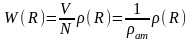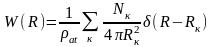 де ρат — середнє число атомів в одиниці об'єму. Згідно цьому співвідношенню значення W(R) рівні відношенню істинної кількості атомів в одиниці об'єму до середньої атомної густини. Тому W(R) має сенс відносної радіальній функції розподілу. Функція W(R) є найважливішою і основною характеристикою структури атомарних рідин і аморфних тіл.
