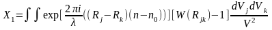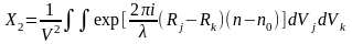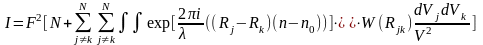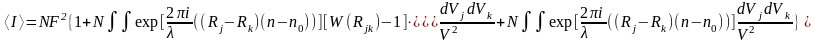 Середнє значення часток інтенсивності, що вносяться парами атомів j і k, виходить при множеннях кожного члена в подвійній сумі на (76) і інтеграціях по елементах об'єму як для dVj так і для dVk. Отже,