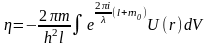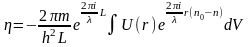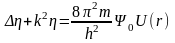 де m — маса розсіюючого електрона, E — його повна і U(r) —-потенційна енергія в електричному полі атома, h — постійна Планка. Передбачається, що U(r) швидко убуває із зростанням відстані r від ядра. Підставимо (46б) в (47). Враховуючи, що хвильова функція Ψ0 плоскої хвилі задовольняє рівнянню руху електрона поза атомом (∆Ψ0 + k2Ψ0= 0), і нехтуючи добутком U(r)η як величиною другого порядку малості, одержимо