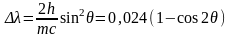 З цієї формули видно, що у міру збільшення кута розсіювання значення ∆λ, зростає від нуля до 0,048 Å.
