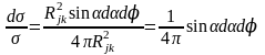 Щоб визначити середнє значення I(S), розглянемо в молекулі атоми j і k. Сумістимо початок координат з центром атома j. За вісь відліку кута α приймемо вектор n — n0 паралельний осі Z . Тоді вірогідність того, що напрям вектора Rjk складає з осями координат кути, укладені між α і α + d α, φ і φ + d φ, рівна відношенню елементу сферичної поверхні до поверхні сфери: