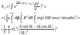 Подвійний інтеграл обчислюється точно в припущенні, що розсіююча частина зразка має форму сфери радіусу L.