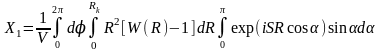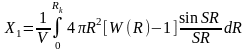 Інтеграція по Vj розповсюджується на весь об'єм розсіюючої частини зразка, який можна прийняти за сферу радіусу L. Що ж до об'єму Vk той його аналітичний вираз залежить від взаємного розташування атомів. Але оскільки функція W(Rjk) сферично симетрична і при Rjk > Rk рівна одиниці, можна припустити, що Vk має форму сфери, радіус Rk якої визначає протяжність ближньої впорядкованості атомів.