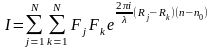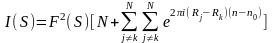 де Ie інтенсивність, віднесена до інтенсивності розсіювання одним електроном; Rj — Rk — векторна міжатомна відстань. Подвійна сума містить N2 членів. Серед них є N членів, для яких j ≠ k. Для кожного такого члена експоненціальний множник звертається в одиницю. Інші N2 — N членів залежать від взаємного розташування атомів. Оскільки, по припущенню, всі атоми системи однакові, вираз (70) приймає вигляд