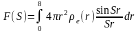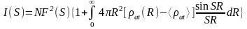 Ця формула показує, що атомна амплітуда розсіювання залежить тільки від S =2ksinθ. Як ρ(r) функція F(S) сферично симетрична. Відмінність між F(S) і ρ(r) полягає у тому, що функція ρ(r) описує розподіл електронної густини в звичному просторі, F(S) представляє цей розподіл в k— просторі, тобто просторі хвильових векторів. Числові значення F(S) для атомів деяких елементів приведені в довідкових таблицях. Знаючи F(S) можна написати вираз для інтенсивності розсіювання атомів: