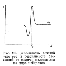При наближенні енергії падаючих нейтронів до значення енергії резонансного рівня ядра другий доданок в (64) стає достатньо великим, щоб переважати над потенційним членом. При цьому різниця E—Ep може бути як позитивною, так і негативною. Для H, Li і Мn резонансний член, будучи негативним, переважає над потенційним, приводячи, таким чином, до негативної амплітуди розсіювання. Якщо ядро володіє спином j, то результат складання його із спином падаючого нейтрона, рівним ±1/2, може привести до утворення складених ядер із спинами відповідно j + 1/2 і j — 1/2; В цьому випадку розсіювання повільних нейтронів на вільному ядрі описуватиметься не одній, а двома амплітудами розсіювання: f + і f —. Перша амплітуда відповідає паралельній взаємній орієнтації спинів ядра і падаючого нейтрона, друга — антипаралельної орієнтації спинів. При цьому диференціальний переріз розсіювання