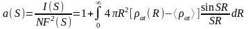 Числові значення структурного чинника а(S) рівного відношенню спостережуваної інтенсивності когерентного розсіювання до інтенсивності незалежного розсіювання того ж числа атомів. При великих S, а також в тих випадках, коли розподіл атомів хаотичний, функція а(S)= 1. Під час переходу речовини із стану з неврегульованим розташуванням атомів в стан з впорядкованим їх розташуванням відбувається перерозподіл інтенсивності, посилення її в одних напрямах і ослаблення в інших. Функція а(S) осцилює з амплітудою, що поступово зменшується, біля одиниці, залишаючись позитивною при всіх значеннях S (мал. 2.11).