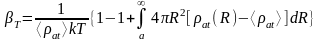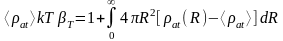 В цьому випадку значення βT буде ще більше за рахунок збільшення площі, обмеженої кривою розподілу. Таким чином, сили відштовхування молекул зменшують стисливість речовини, сили тяжіння збільшують її. І чим більше крутизна кривої відштовхування, тим менше стисливість і більше пружність. Оскільки функція 4πR2[ρat(R) — < ρat >] перетворюється в нуль на відстані R, рівному декільком молекулярним діаметрам, то з (100) витікає, що для стисливості рідини визначальне значення має найближче оточення, характер зміни енергії тяжіння і відштовхування молекул на малих відстанях.