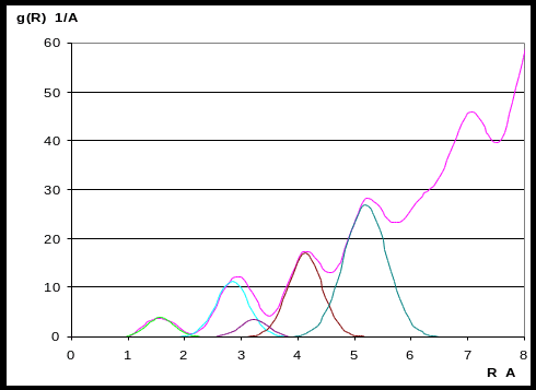 3. По отриманим дифрактограмам були визначені залежності інтенсивності від кута; і ці значення були занесені в спеціальну програму середовища Excel за допомогою якої були внесені необхідні поправки і побудована радіальна функція густини.