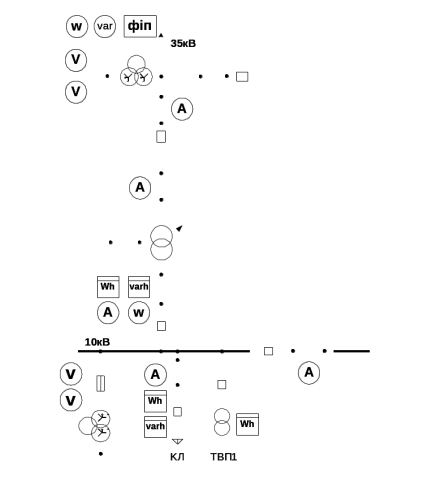 Рис. 4.5 - Схема розміщення контрольно-вимірювальних пристроїв на підстанції